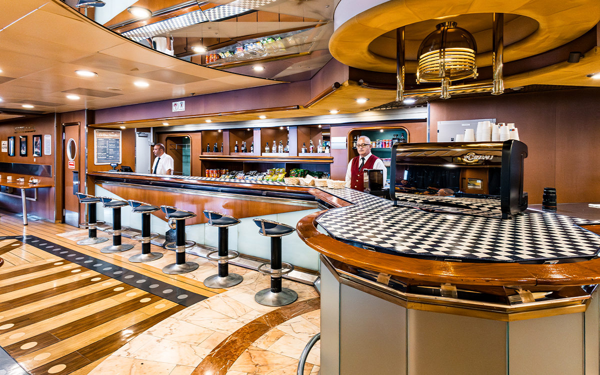 The offer of Bars and Restaurants is very wide and suitable for any type of traveller, of which there are 6 in total. On board there is an à la carte restaurant for customers looking for a welcoming and intimate environment in which to enjoy a refined menu, taking advantage of punctual and attentive service from Adria Ferries staff. For those looking for an informal space in which to purchase and consume meals, the self-service restaurant with 230 seats is available. There are also 3 bars of different sizes, located both on the internal and external decks. The common denominator of all the catering outlets is the excellence and variety of the products offered.